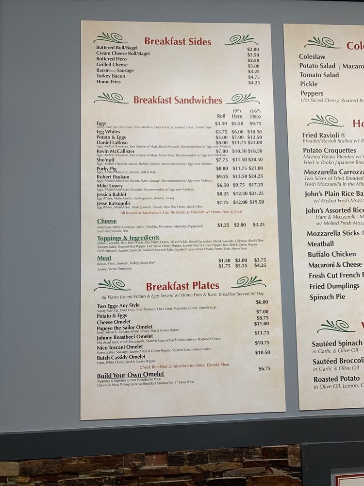 The Original John's, located in Brooklyn, NY, is a casual eatery known for its delectable salads, delis, and sandwiches. With a diverse menu offering vegan options, breakfast sandwiches like the popular Daniel LaRuso Eggs and Kevin McCallister Eggs, as well as hearty breakfast plates such as the Popeye the Sailor and Nico Toscani, there is something for everyone. In addition to their mouth-watering food options, The Original John's provides a range of beverages from Poland Spring to fresh squeezed orange juice. Customers rave about the flavorful dishes, friendly staff, and cozy ambiance. Whether you're craving a classic roast beef sandwich or a refreshing San Pellegrino, The Original John's is a must-visit spot for a satisfying meal experience.