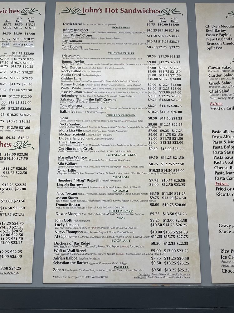 The Original John's Menu